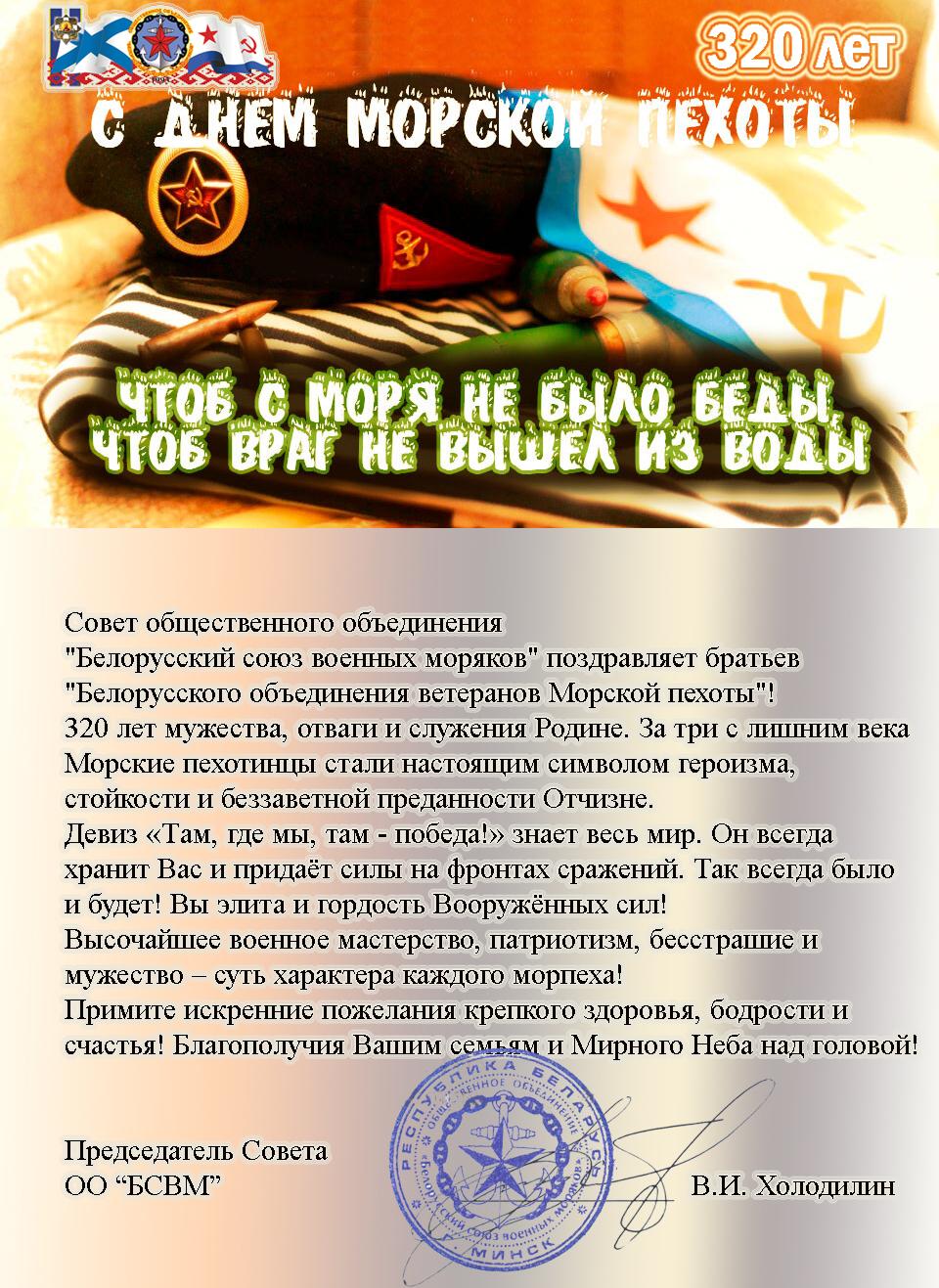 - 2015.11.14 В МИНСКЕ ОТМЕТИЛИ 310-Ю ГОДОВЩИНУ СОЗДАНИЯ МОРСКОЙ ПЕХОТЫ