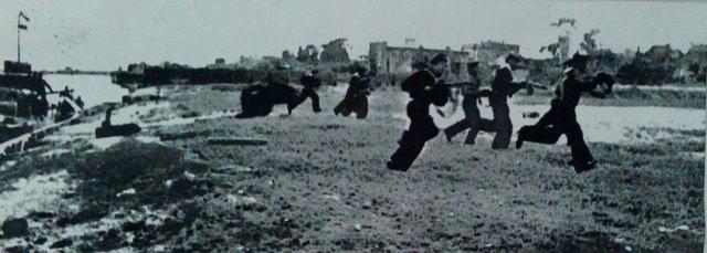 Однако с рассветом обстановка изменилась. Подтянув с фронта до двух полков с танками, противник контратаковал. В течение дня десант под натиском врага оставил ряд занятых ночью зданий, укрепившись в примыкавшем к порту густом парке. Всего за двое суток боя высадившийся полк отразил 25 атак врага, было уничтожено 12 танков, до 1000 солдат. В составе десанта вели бой освобождённые узники лагеря военнопленных (до 200 человек).