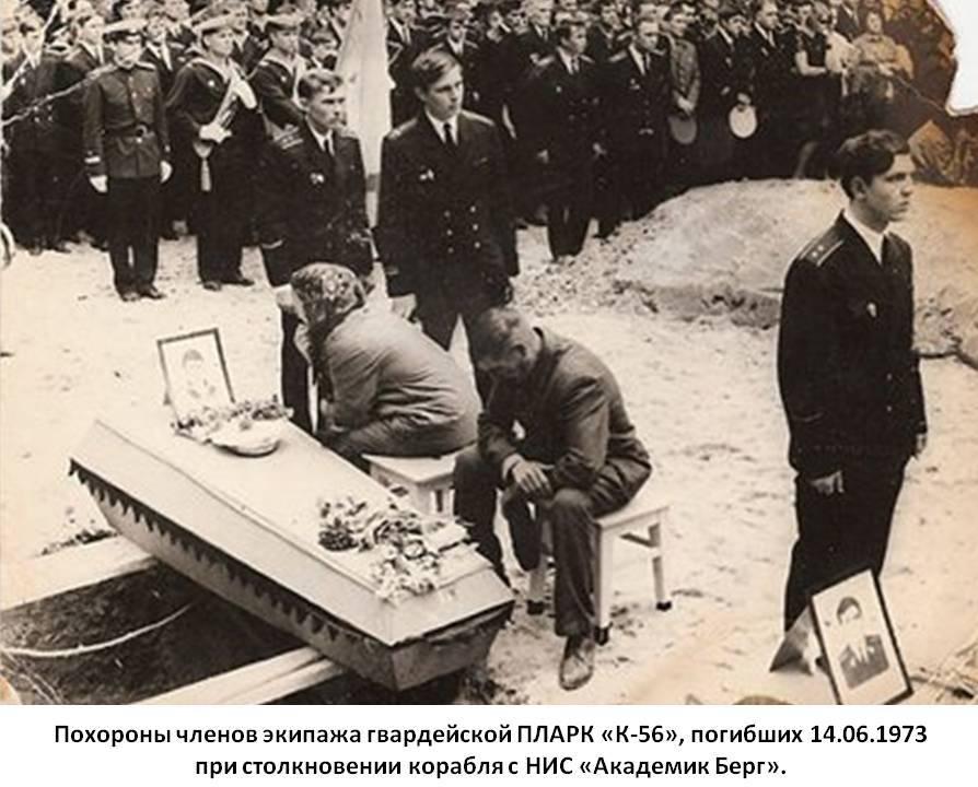 «Академик Берг» ударил лодку в правый борт, в районе носовой переборки второго отсека, проделав в прочном корпусе четырёхметровую пробоину. Сам же «Академик» удара почти не ощутил. Эта громадина ледокольного типа (разведывательный корабль, замыкавшийся на ГРУ и ГШ) тогда шла на выход, но почему-то по входной линии фарватера безо всяких мер предосторожности.