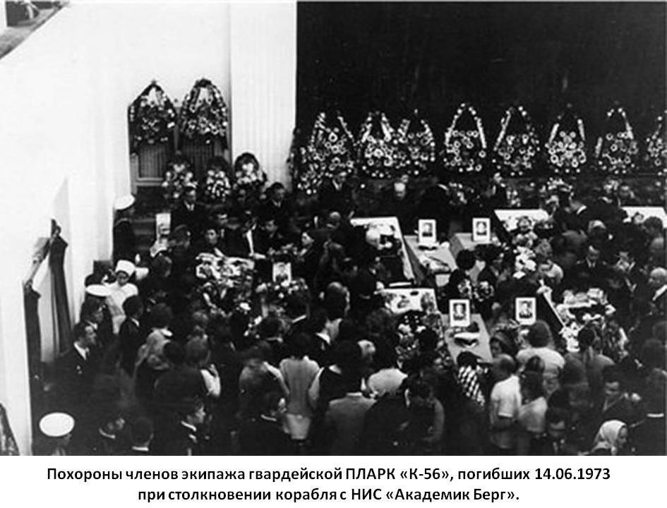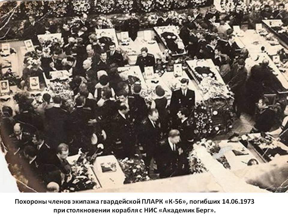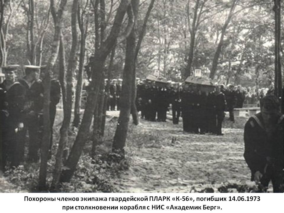 13 июня 1973 года после успешного завершения ракетных стрельб на одном из полигонов в Японском море, гвардейская К-56 в надводном положении прибрежным фарватером возвращалась в родную базу. Старшим начальником на борту был заместитель командира дивизии АПЛ капитан 1-го ранга Л. Сучков.
