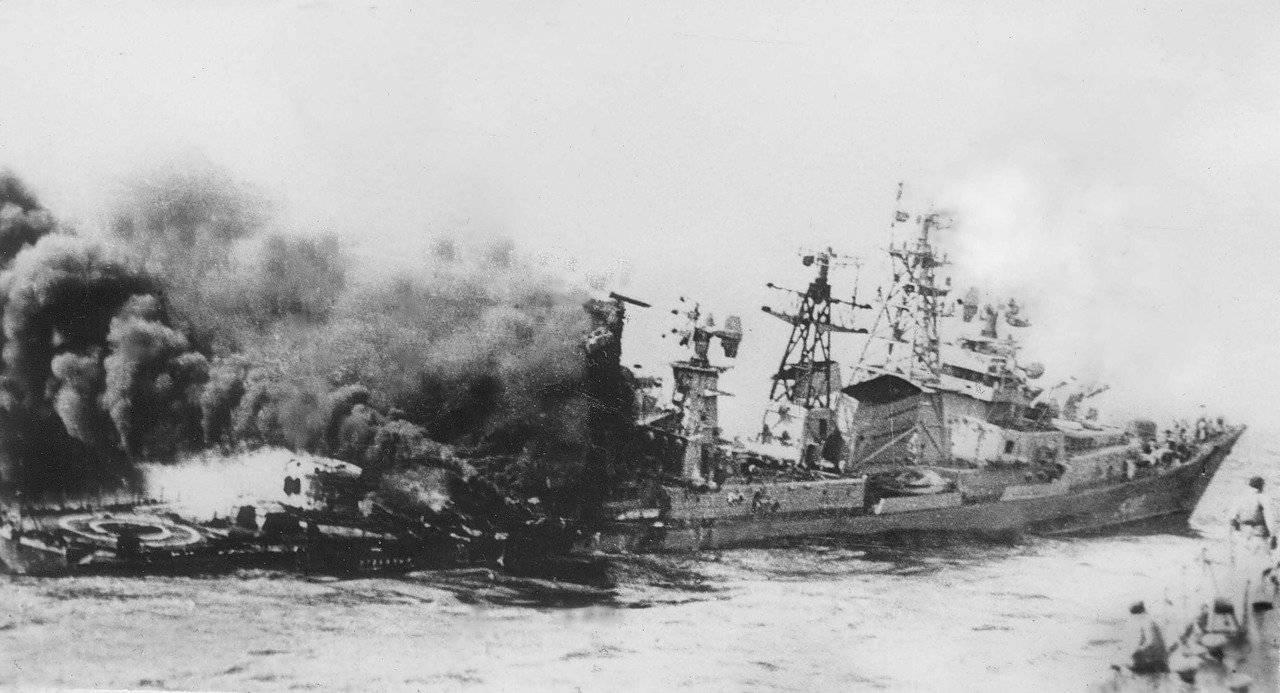 В 9:58 на корабле произошёл самопроизвольный запуск маршевого двигателя одной зенитной управляемой ракеты кормовой установки, что привело к возгоранию и взрыву 15 ракет В-601 в погребе боезапаса №8.