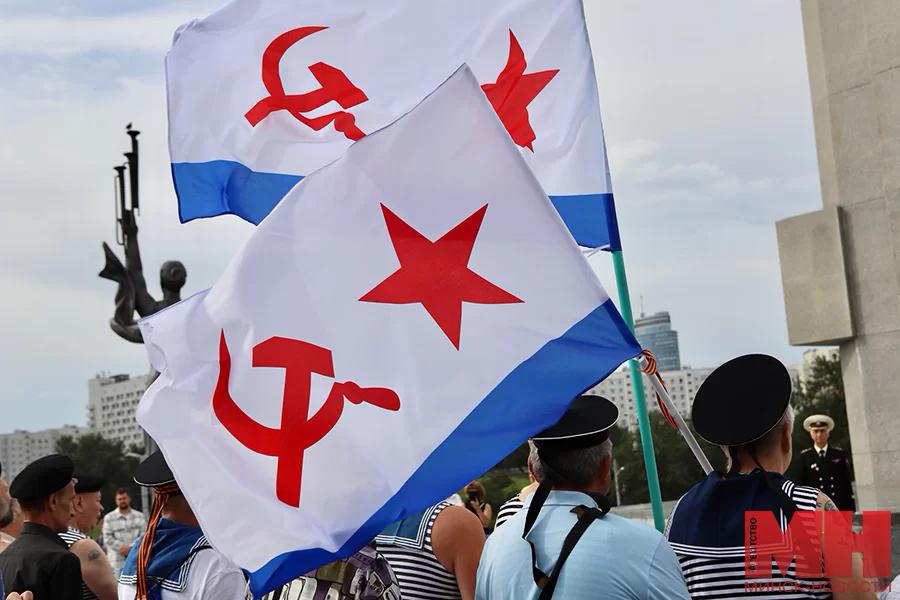 Люди в морской форме для нашей столицы не столь привычны, как для российских городов, где до сих пор есть военно-морские базы и соответствующие учебные заведения. Моряков можно было узнать по военной форме и флагам ВМФ, которые они с гордостью несли на встречу с друзьями, боевыми товарищами. Знакомлюсь с некоторыми участниками.