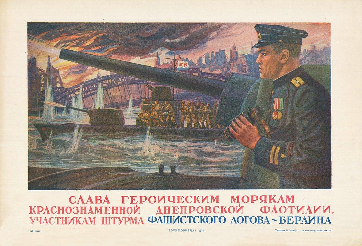 Справедливы слова флотского писателя Леонида Соболева, прошедшего многие огневые версты с моряками‑днепровцами: «Днепровская флотилия замечательна тем, что по своей природе, по своим традициям она действует внезапно, дерзновенно и смело. Она замечательна тем, что все время идет вперед армии, ибо ее задача заключается в том, чтобы создавать фронт в тылу противника». Это вполне подтвердилось в боях за освобождение Польши и при взятии Берлина. 22 апреля 1945 года до центра фашистского логова оставалось совсем немного. Но на пути встала водная преграда — река Шпрее, шириной до 300 метров. По ее западному берегу тянулись сплошные минные поля, стояло множество бронеколпаков и бункеров. Каждый дом, окно, щель извергали огонь. Армейские понтонеры в районе Трептов‑парка попытались навести переправу, но были жестоко обстреляны. Оставалось одно: смелый и решительный десант.