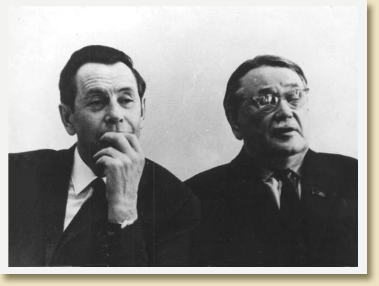 Первый секретарь ЦК КПБ П.М. Машеров и президент АН БССР В.Ф. Купревич. Середина 1960-х гг.