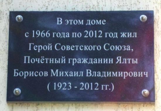 Установлена в Ялте на Киевской улице, дом №7, в котором жил Герой. Фото: Сергей Кузоватов, 13 сентября 2019 года.