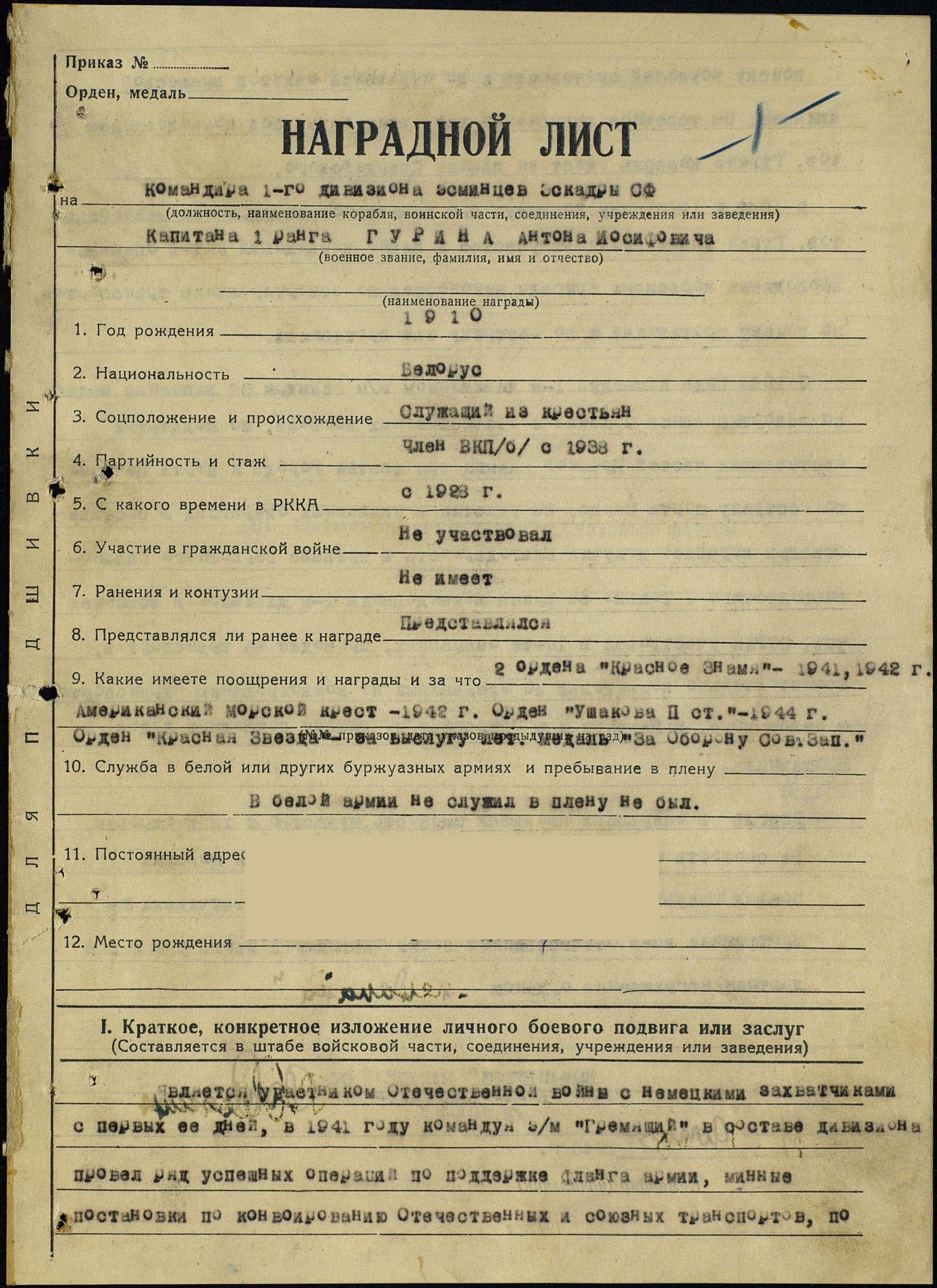 - Герой Советского Союза ГУРИН Антон Иосифович