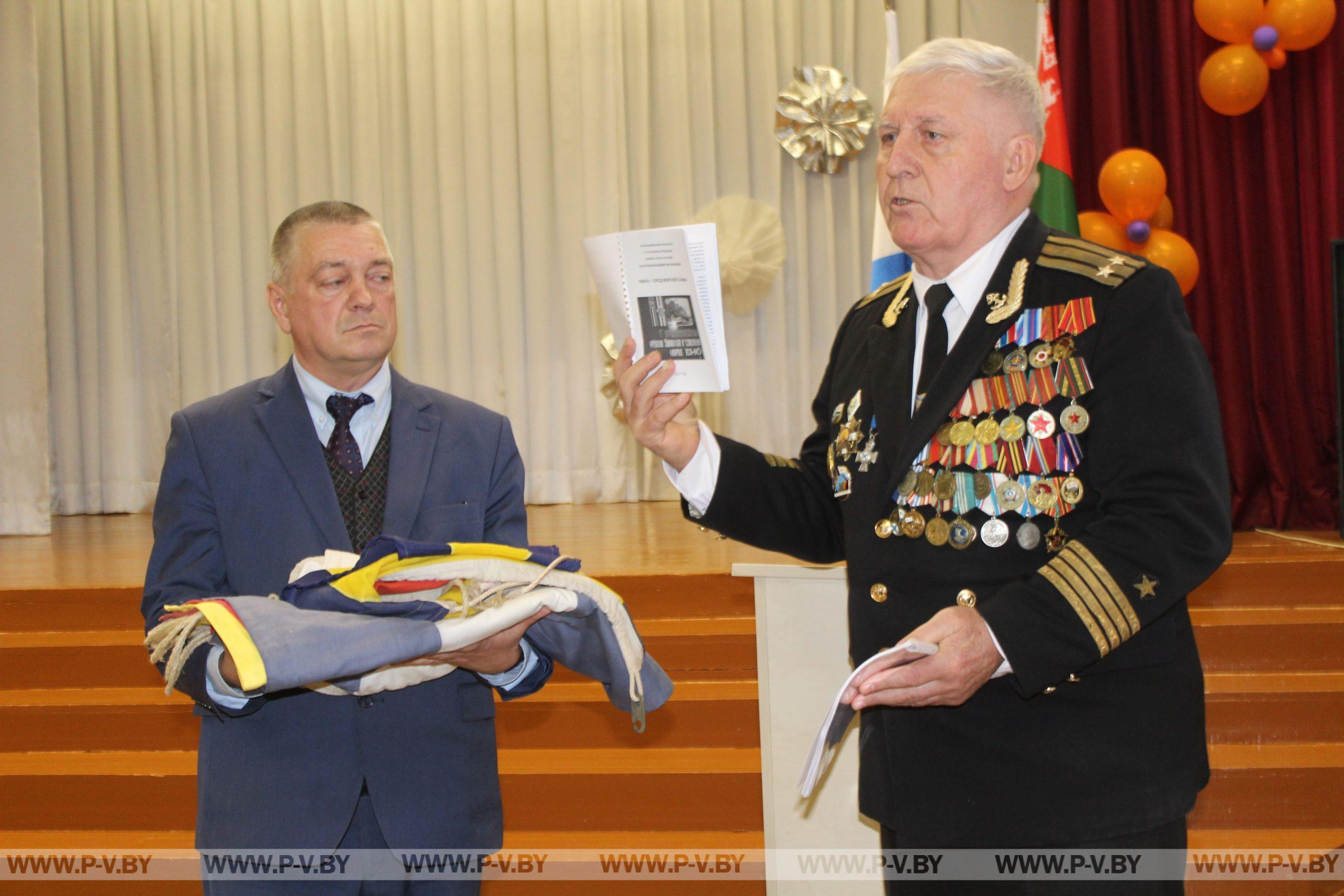 В торжественные дни – Победы, Военно-морского флота, освобождения Пинска ими будут украшать застывший в парке на пьедестале легендарный БК-92. Владимир Бисултанов презентовал свою книгу «Пинск – город морской славы», после чего также передал её музею.