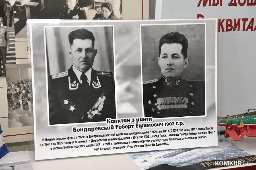 – О нем знают немногие бобруйчане, несмотря на то, что он был основан 37 лет назад – по инициативе Федора Федоровича Аскерко. Располагается он в учебном корпусе автотранспортного колледжа, его экспозиция рассказывает о боевом пути моряков-днепровцев во время Великой Отечественной войны. Количество экспонатов постепенно растет. В этом году нам принесли редкое фото капитана третьего ранга Роберта Бондаревского, который воевал в ДВФ, прошел всю войну, участвовал в параде Победы в 1945-м. А дочь Николая Михолапа, я знаю, готовит картину, которую собирается подарить музею. Подарку будем очень рады!