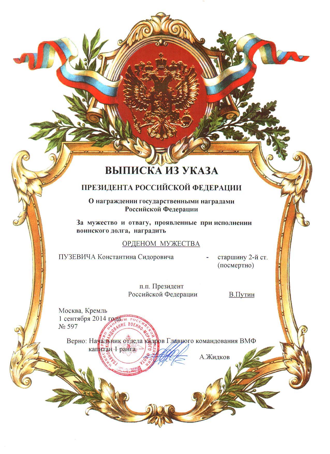 КОНСТАНТИН ПУЗЕВИЧ НАГРАЖДЕН ОРДЕНОМ МУЖЕСТВА ПОСМЕРТНО