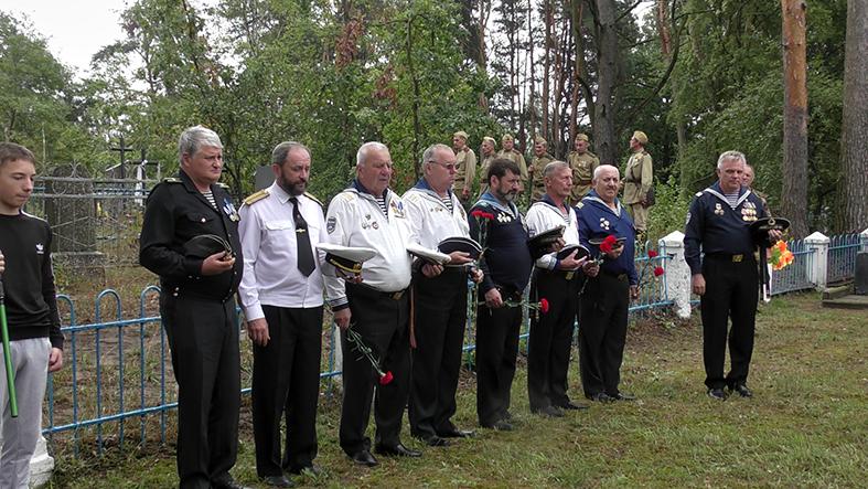 Затем была Минута молчания. В память о геройском земляке, смело, отважно и решительно защищавшем Родину от ненавистного врага, бойцы ВИК «Калинковичско-Мозырский поиск» произвели троекратный залп. В почетном карауле у могилы Маджара встали ветераны ВМФ из г. Светлогорска. Ведь начинал свою воинскую службу Владимир Романович в бескозырке – моряком Балтийского флота.