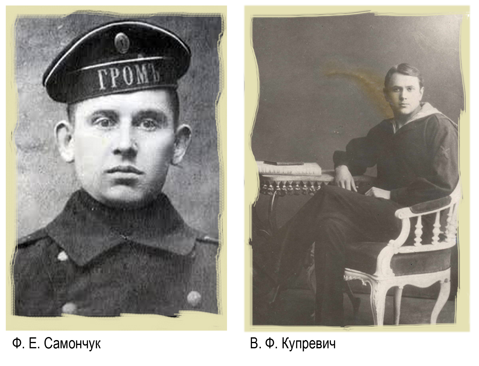 Команду «Самсона» составляли 13 офицеров, 42 старшины и 112 матросов, всего 167 человек. Одновременно с Петром на корабль прибыл еще один белорус из Минской губернии Василий Купревич, который также, как и наш земляк, вырос в семье земледельца, был двумя годами его моложе, а службой постарше. После Смолянского сельскохозяйственного училища еще до начала войны он поступил в Кронштадскую школу юнг Балтийского флота, которую закончил в 1916 году по специальности сигнальщик-рулевой.