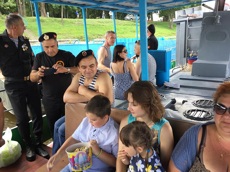 Морской праздник продолжился путешествием на теплоходе «Стрежень» к живописному месту, где гостей ожидала ароматная уха. Общение, музыка, коллективное купание прибавили положительных эмоций, а также эксклюзивных фотографий в личный арсенал впечатлений каждого моряка и не только. Ведь рядом со многими были жены и дети.