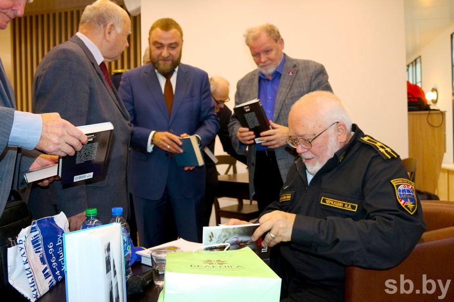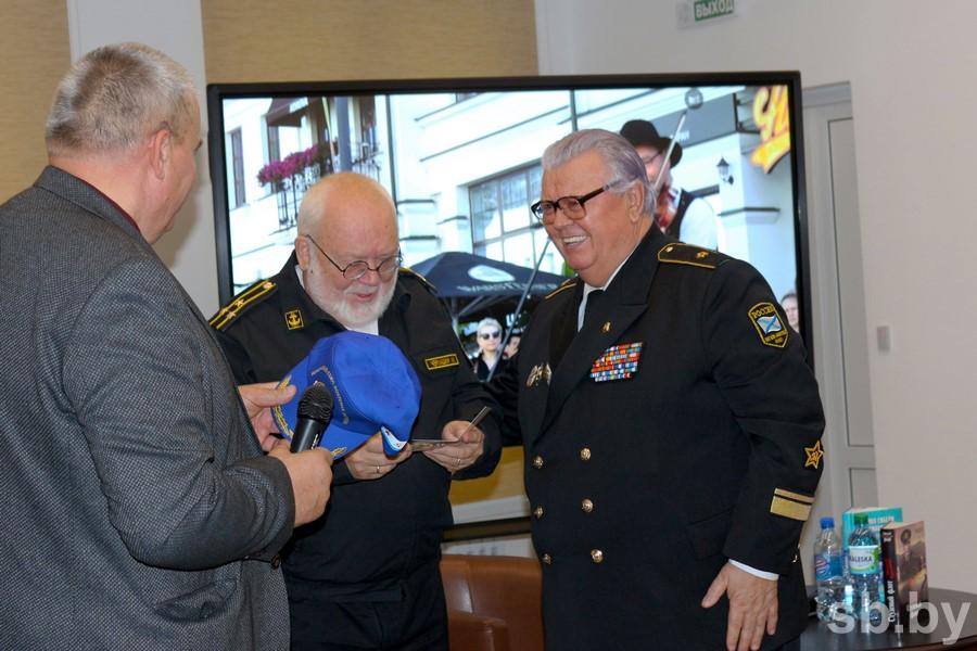 — Сколько в зале знакомых лиц! — начал писатель, обращаясь к офицерам Союза военных моряков Беларуси. — Такое чувство, будто мы собрались на дружескую братскую встречу.
