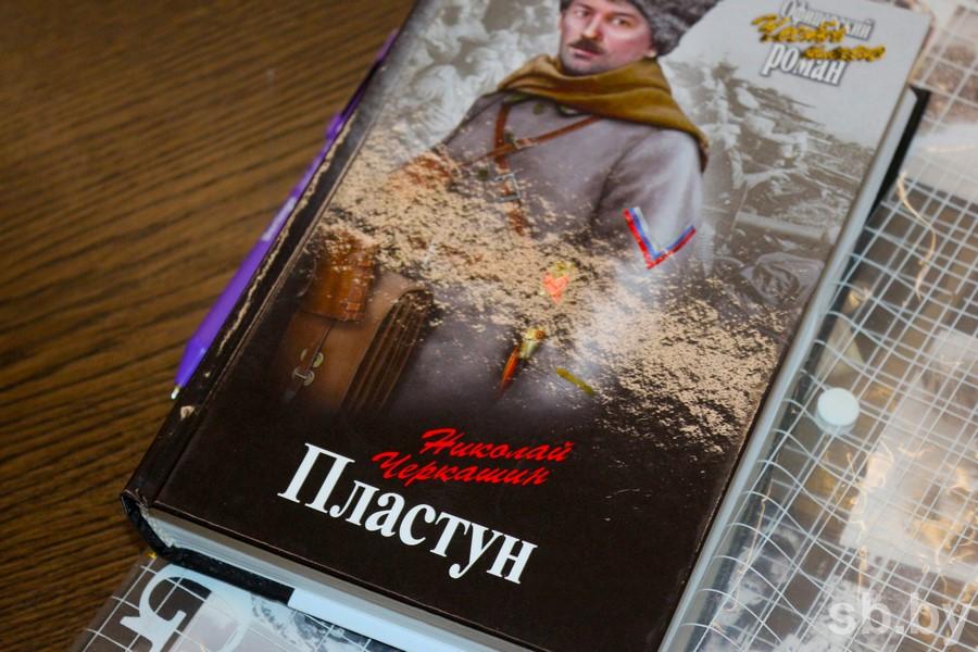 Новый роман «Пластун», который привез Николай Черкашин, начинается на белорусской земле, а именно на Гродненщине. Действие происходит во время Первой мировой войны. Рассказывается про дорогу смерти Белосток — Волковыск — Зельва — Слоним.