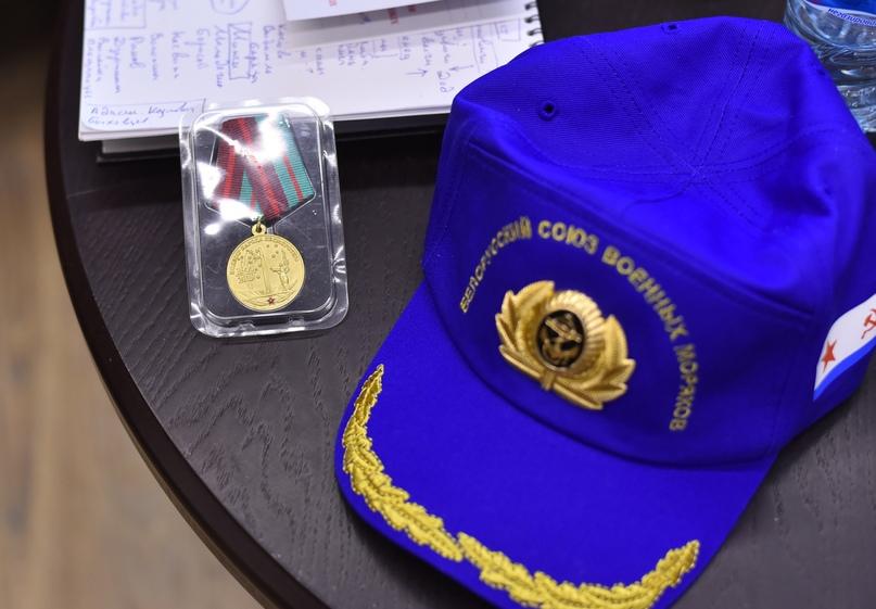 — Чтобы дополнить твой образ военного офицера сегодня, — передавая военную фуражку писателю, сказал председатель Союза военных моряков Беларуси Валерий Холодилин. — И чтобы наши встречи благодаря твоему творчеству были частыми.