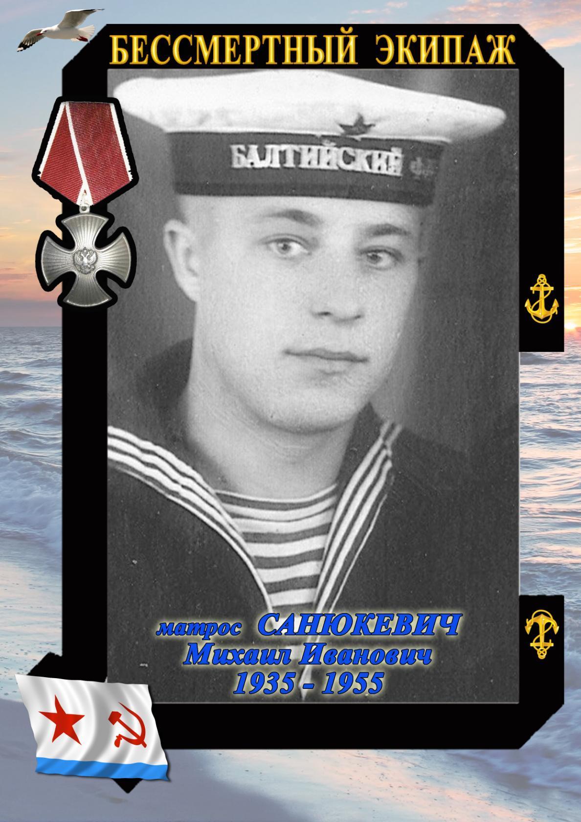 Михаил Иванович Санюкевич погиб на известном линкоре «Новороссийск», который взорвался 29 октября 1955 года. Долгое время трагедия была засекречена. О ней начали говорить только с началом перестройки, а в 1999 году погибших на линкоре посмертно наградили орденами мужества.