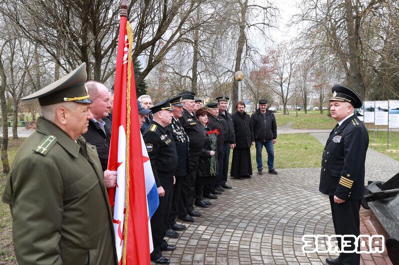 Хвілінай маўчання ветэраны ВМФ ушанавалі памяць загінуўшых падводнікаў, усклалі кветкі да падножжа памятнага знака.