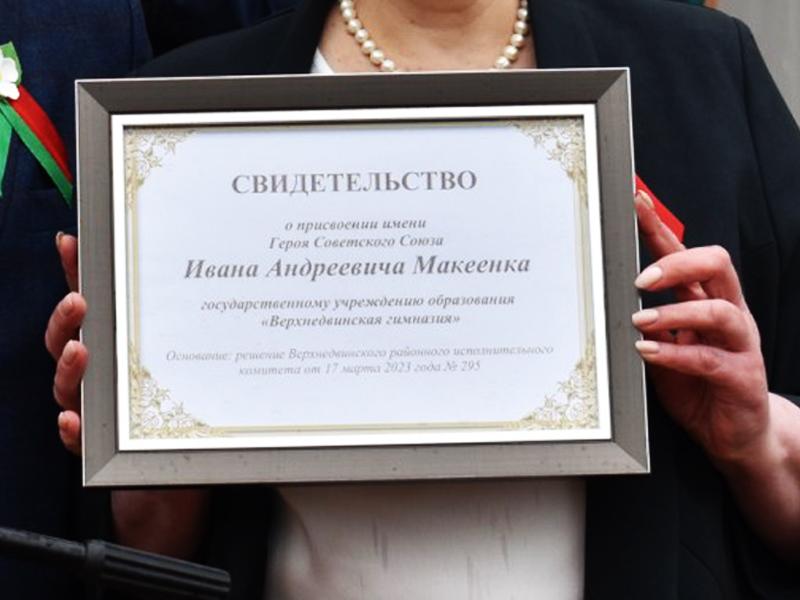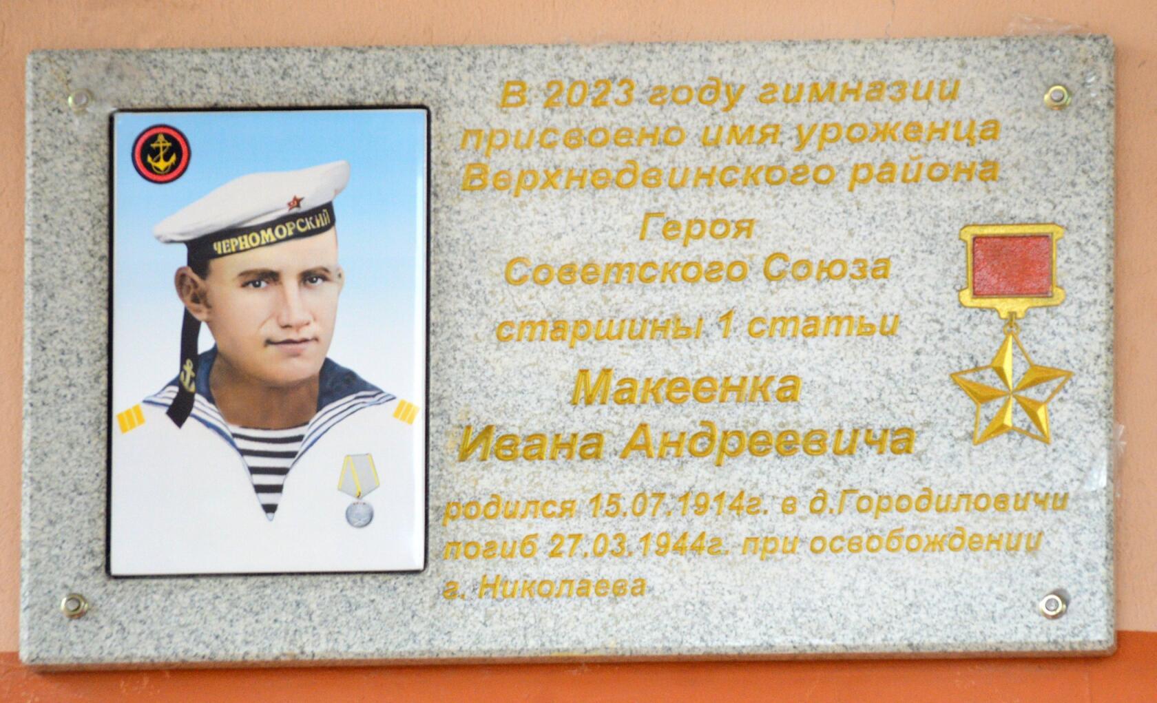 16 мая 2023 года в Верхнедвинской гимназии состоялась торжественная линейка, посвящённая присвоению этому учреждению образования имени Героя Советского Союза МАКЕЕНКА Ивана Андреевича.