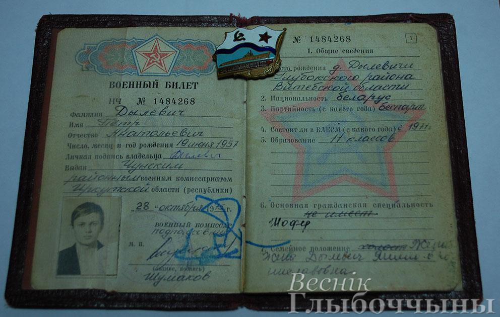 – На падлодцы нас было многа, у асноўным – рускія, з беларусаў я адзін. Намеснік камандзіра па палітчасці Озераў Беларусь ведаў, а пра Глыбокае не чуў. Аднойчы прыйшоў і кажа: “Гэта ты з таго Глыбокага, адкуль нам згушчанае малако і кансервіраваныя лісічкі пастаўляюць?” І працягвае мне прадукцыю нашага МКК і кансервавага завода. Вось так прадукцыя глыбоцкіх прадпрыемстваў дапамагла яму на Камчатцы пазнаёміцца з маёй малой радзімай, – гаворыць Пётр Анатольевіч. Пасля дэмабілізацыі старшына I стацці Пётр Дылевіч, не раздумваючы, вярнуўся на Глыбоччыну. З ваенкамата, куды звярнуўся за дапамогай аб працаўладкаванні, яго накіравалі на курсы вадзіцеляў у СПТВ-31. Усе восем месяцаў вучобы атрымліваў па 90 рублёў стыпендыі, а пасля ўладкаваўся падменным вадзіцелем у аўтакалону (цяпер АТП-16). Нейкі час працаваў на “хлебнай” машыне. Аднойчы ў магазіне ў Запруддзі ўбачыў прадаўшчыцу Яніну, якая паланіла сэрца падводніка. Пётр і Яніна ўжо 40 гадоў разам. Выгадавалі двух дзяцей, маюць пяцёра ўнукаў.