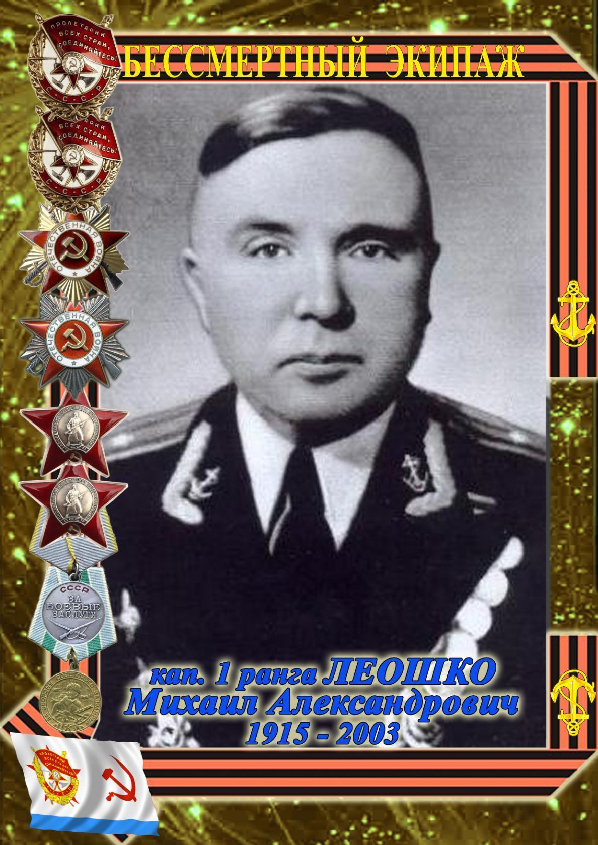 ...Черная гранитная плита напоминает морскую волну. Свинцово–холодную и тяжелую, какие бывают в северных морях. А может, это мне только кажется, что напоминает? На плите — силуэт легендарной подводной лодки К–21 — «катюши», как любовно называли ее моряки. И очень скромная надпись: «Леошко Михаил Александрович». Внизу — даты жизни: 1915 — 2003. И все. Ни портрета, ни титулов, ни скорбных эпитафий.