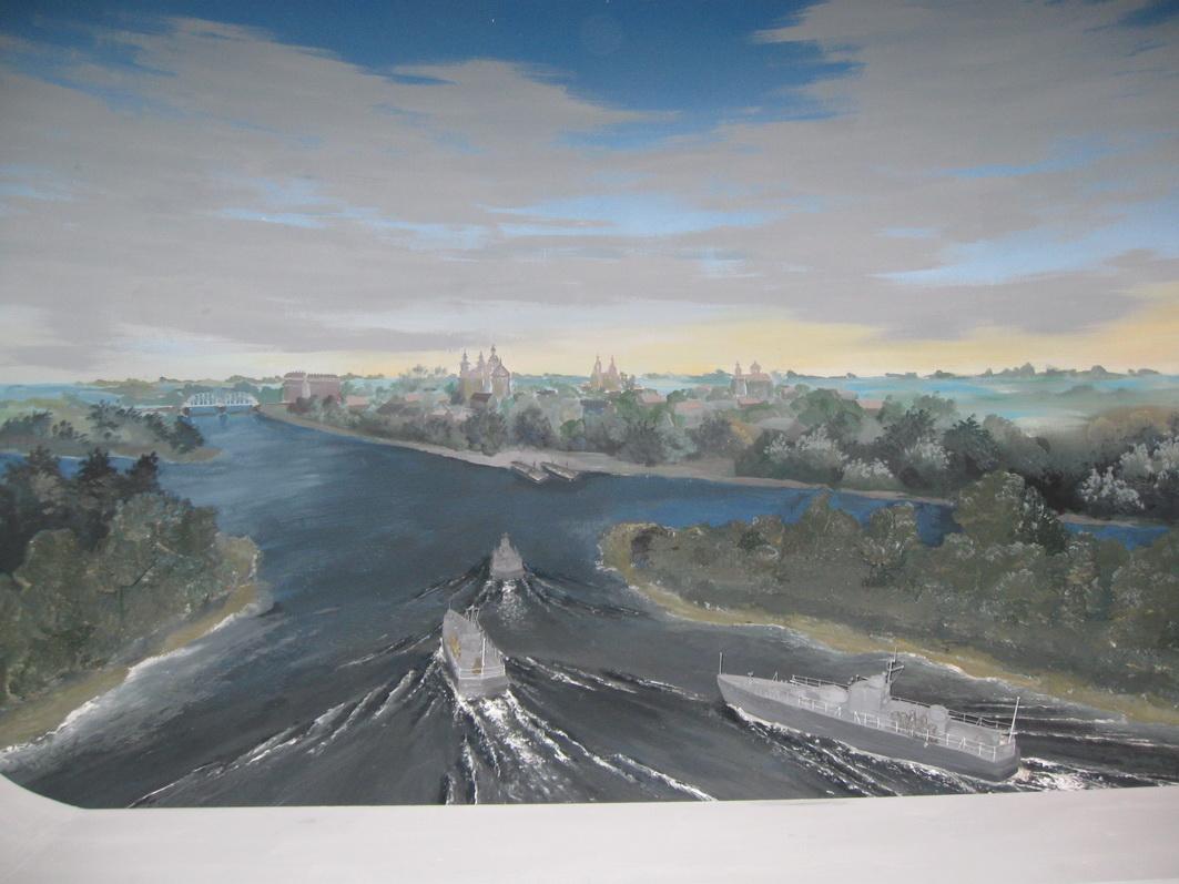 Создателям музея удалось привлечь к сбору экспонатов и организации экспозиции больших энтузиастов морской истории Беларуси А.А.Жигальского, Ю.Н.Жутяева, А.Я.Алешкевича. Пока открылась только первая экспозиция, связанная с действиями речных военных флотилий на Березине, Днепре и Припяти в 1916—1944 годах. Удачно подобранные фотографии, искусно выполненные модели речных боевых кораблей (авторы А.А.Жигальский и Ю.Н.Жутяев), диарама “Десант в Пинск 12—14 июля 1944 г.” (авторы О.К.Чирко и А.А.Жигальский), пояснительные тексты, фрагменты боевых кораблей, другие экспонаты производят впечатление сопричастности к событиям.