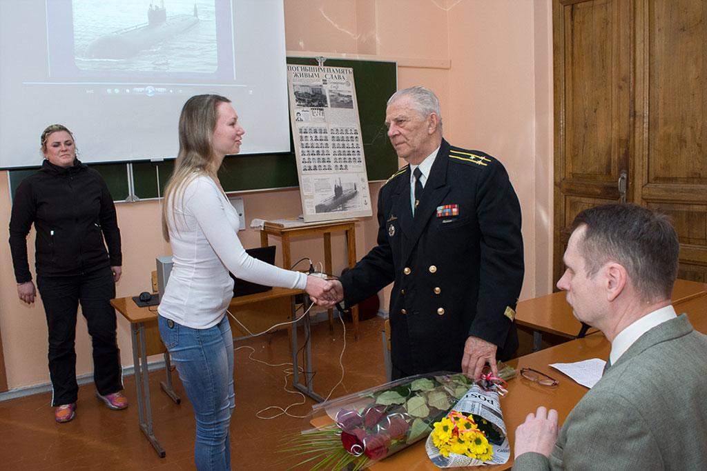 На кураторский час был приглашен председатель Витебского областного отделения Белорусского союза военных моряков, капитан 1 ранга Анатолий Михайлович Ковалев, который рассказал студентам о событиях трагедии подводной лодки «Комсомолец».