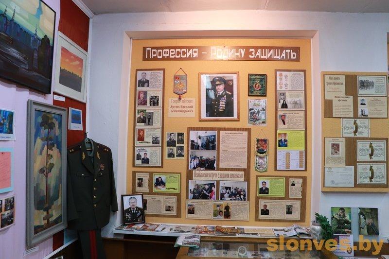 Затем для участников мероприятия была проведена интересная экскурсия по школьному краеведческому музею, один из уголков которого, стараниями историка Веры Владимировны Федуты, посвящен жизни и деятельности Василия Александровича. В экспозиции – форма В.А. Артюха, его генеральские погоны, фотографии и документы. Несколько лет назад музей пополнился новым экспонатом – картиной “Письма с фронта”, которую Василий Александрович подарил родному учебному заведению.