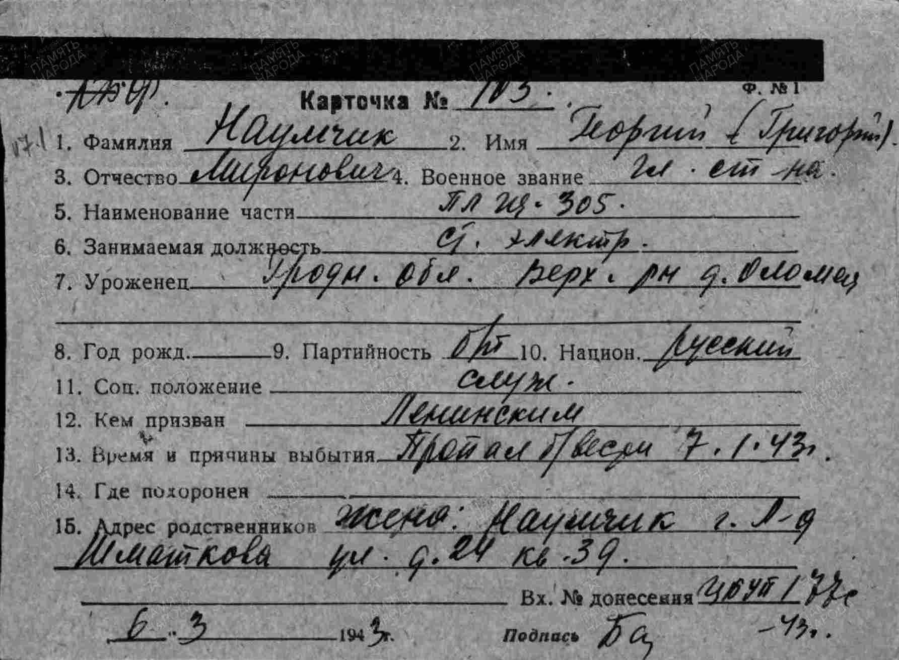 Документ в учётной картотеке (с сайта https://pamyat-naroda.ru)