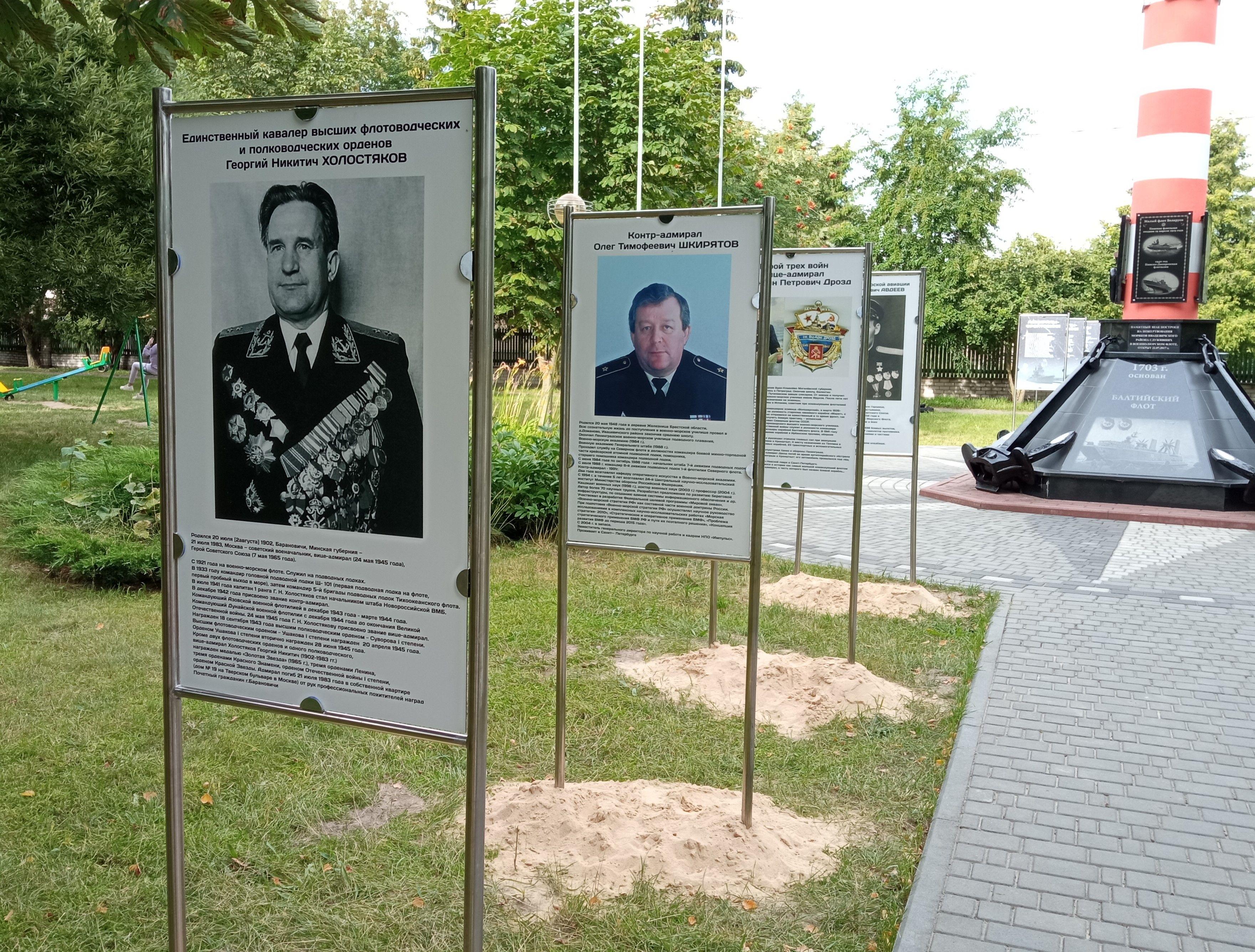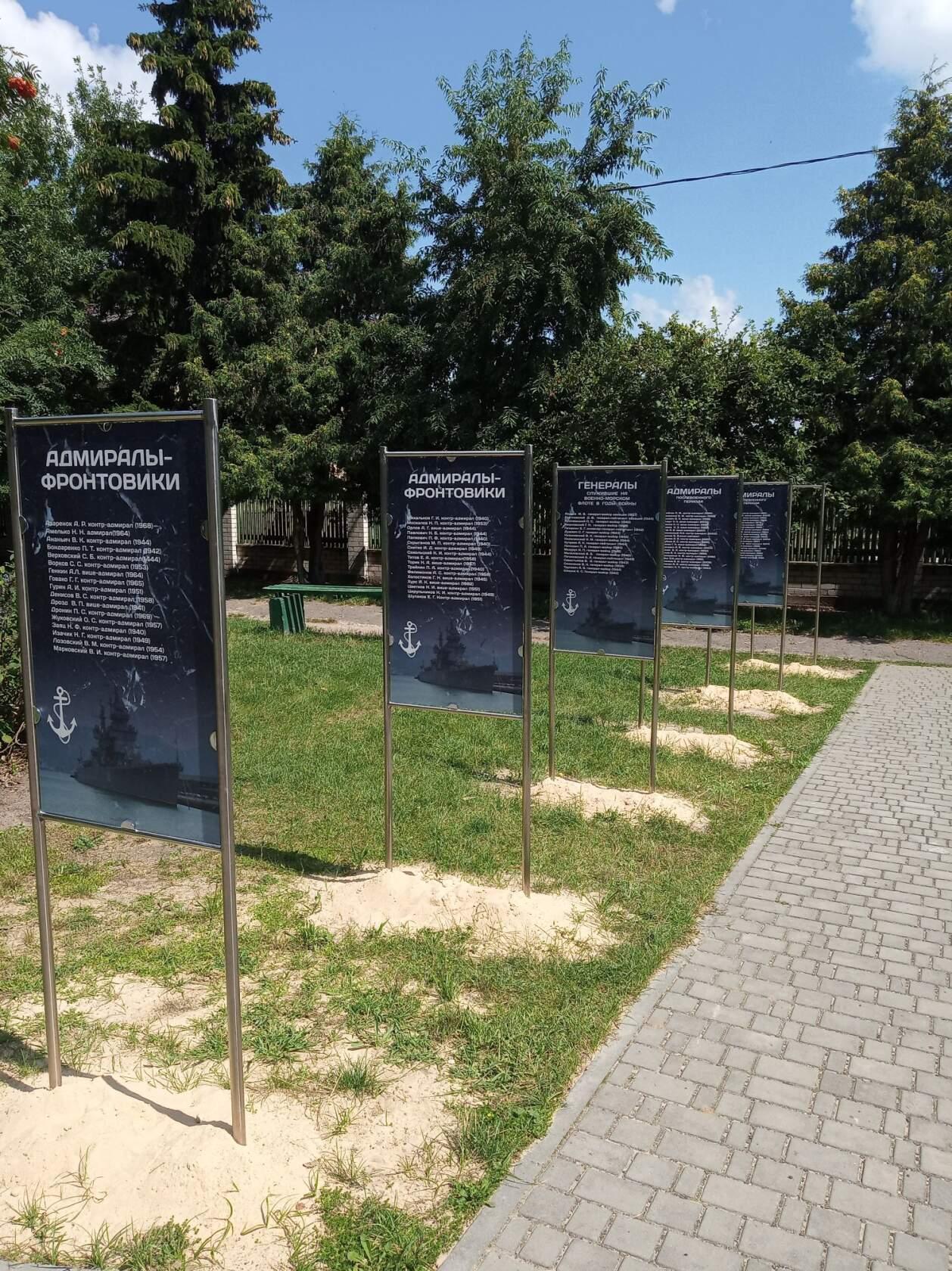Отдельные стенды посвящены вице-адмиралу, Герою Советского Союза Георгию Холостякову, родившемуся в Барановичах, контр-адмиралу Олегу Шкирятову, который родом также из Брестской области, генерал-майору морской авиации Михаилу Авдееву, чья малая родина на Могилевщине, адмиралам послевоенного периода.