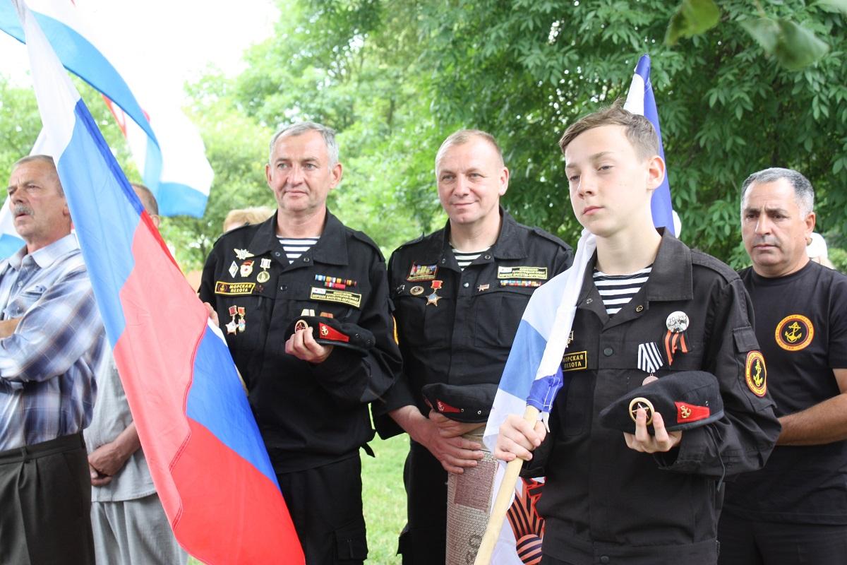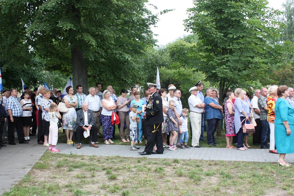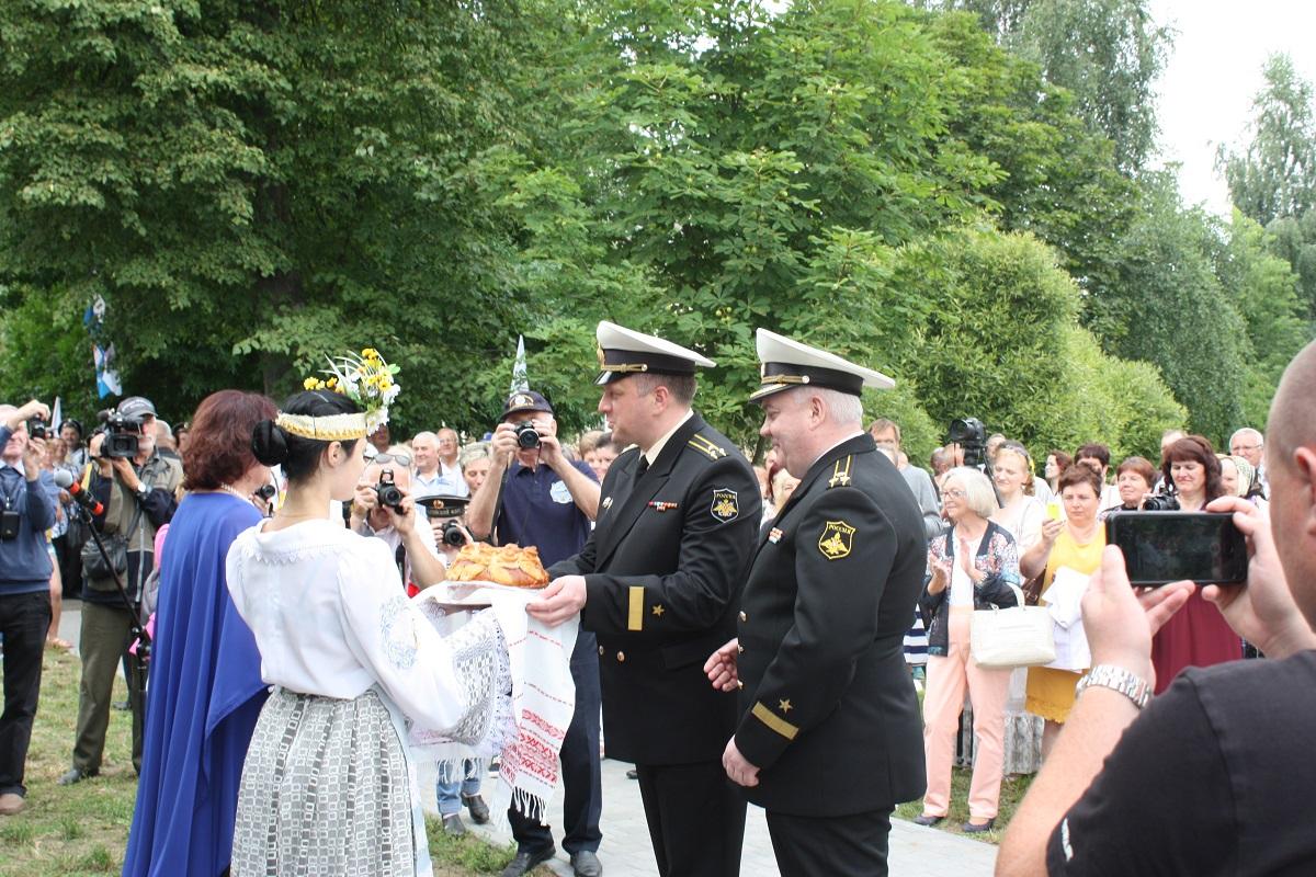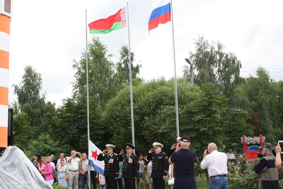Перед открытием памятника состоялось торжественное построение и поднятие флагов Беларуси, России и Военно-морского флота.