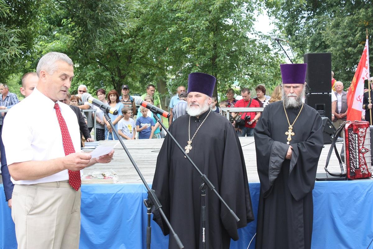 После торжественный речей представителей райисполкома, общественных организаций и гостей, памятник был освящен православными священниками.