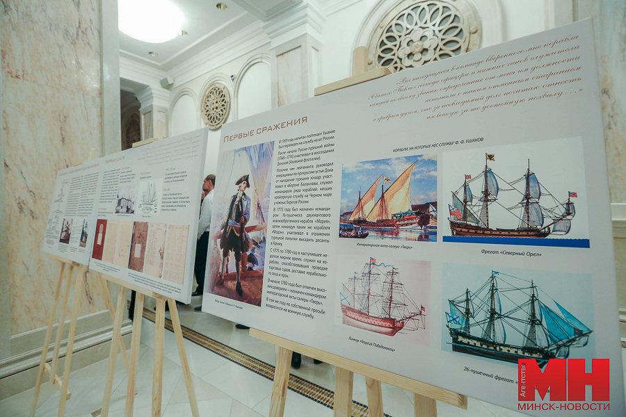 Выставка «Непобедимый адмирал: святой праведный воин Федор Ушаков» открылась 19 мая в Белом зале Храма-памятника в честь Всех святых и в память о жертвах, спасению Отечества нашего послуживших, передает корреспондент агентства «Минск-Новости».