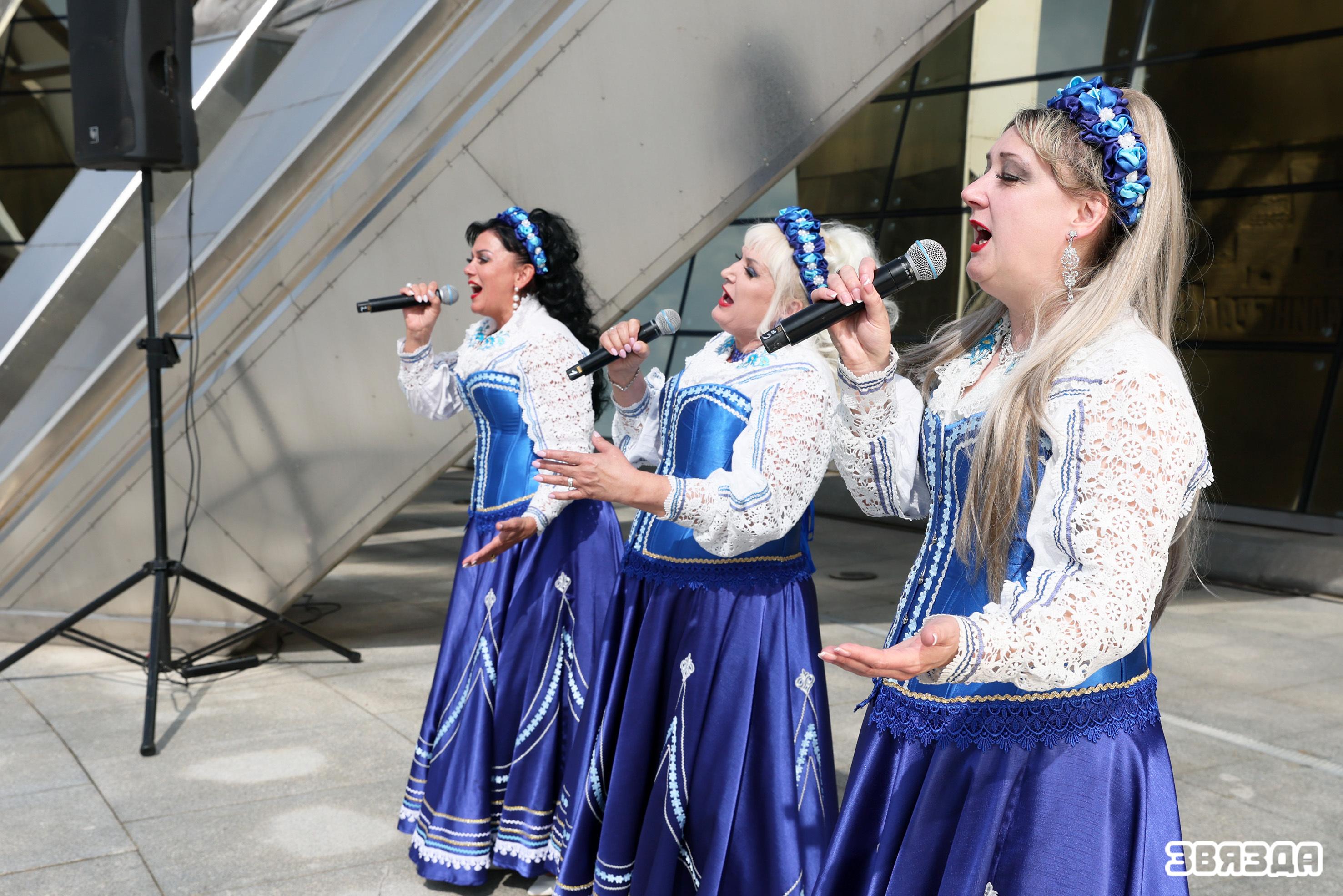 Па заканчэнні афіцыйнай часткі свята ўдзельніцы вакальнай групы «Гармонія» падарылі ваенным маракам свае песні.