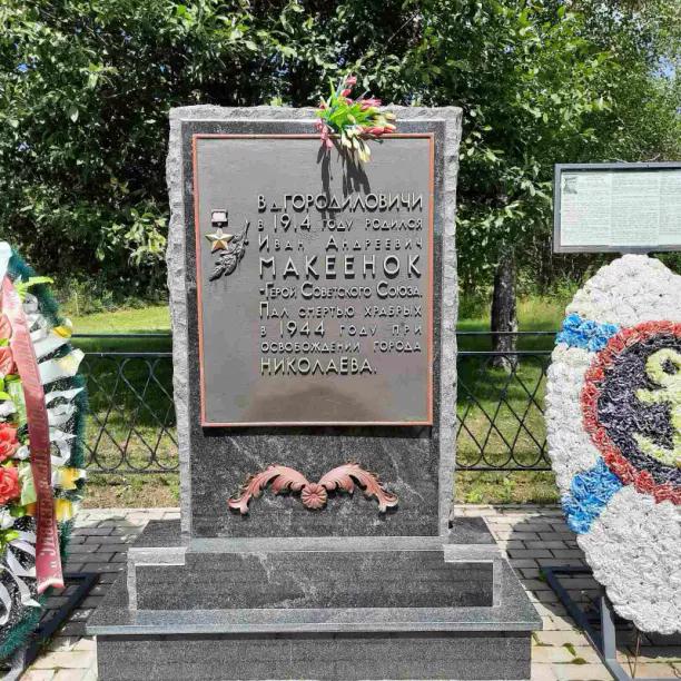 Прибыв в д. Городиловичи, мы посетили памятник Герою Советского Союза Ивану Андреевичу Макеенку. На построении возле обелиска выступили: председатель Верхнедвинских военных моряков Валерий Соловьёв, командир Витебских морских пехотинцев Василий Ерилов. Было рассказано о подвиге, совершённом Иваном Андреевичем в годы Великой Отечественной войны при освобождении города Николаев. Примечательно, что при присвоении звания Героя И.А. Макеенку произошел редчайший случай, т.к. в годы войны практически не было случаев массового присвоения звания Героя. Однако по результатам операции по освобождению Николаева верховный главнокомандующий И.В. Сталин подписал указ о присвоении Героя порядка 50-ти воинам.