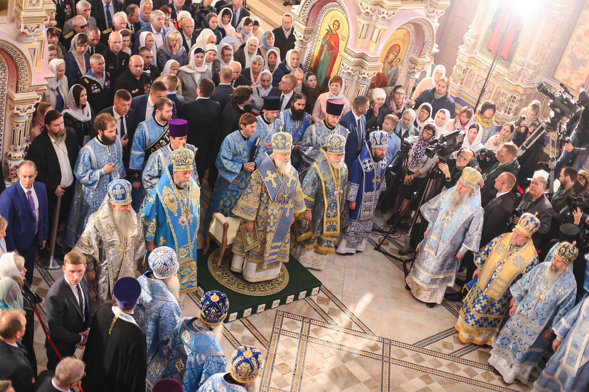 В праздник Покрова Пресвятой Богородицы в Минске произошло большое событие, касающееся всей духовной жизни страны. В храме-памятнике в честь Всех Святых Патриарх Московский и всея Руси Кирилл совершил чин Великого освящения главного (верхнего) придела и провел торжественное богослужение. Церемония собрала тысячи людей. Представители разных возрастов, статусов и конфессий объединились в общей молитве за Беларусь, за мир, за процветание нашей страны и народа.