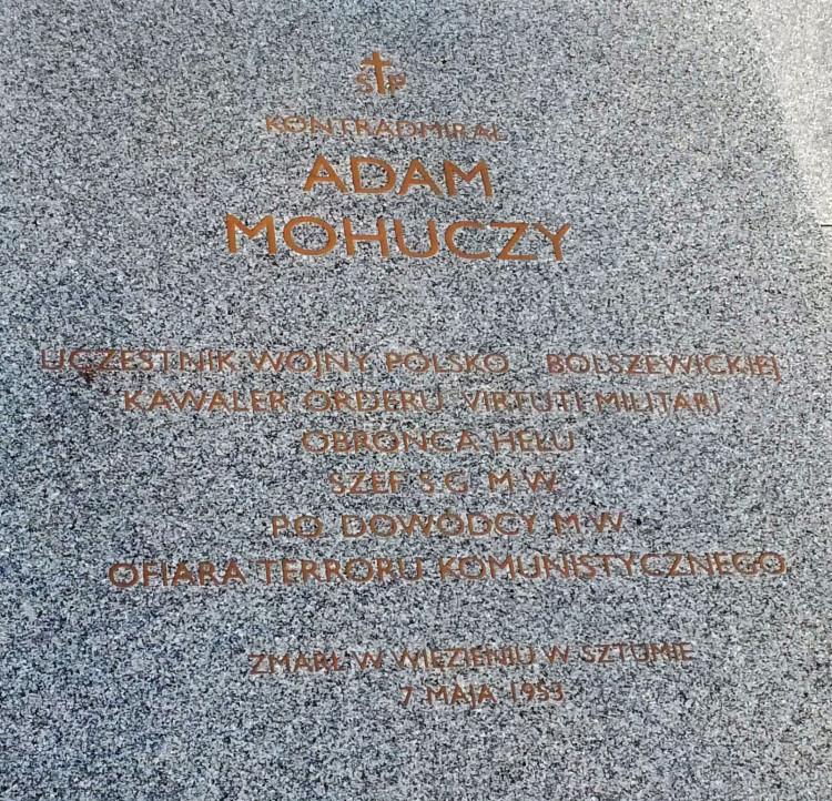 Надгробная плита контр-адмирала Адама Мохучи на Военно-Морском кладбище в Гдыне.