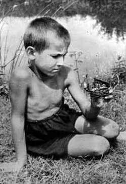 «Мой сын, - гаворыць і настаўніца Кузьміцкага Надзея Іванаўна Папова, цяпер сакратар гаркама партыі. - Яго я блытала разам са сваім: такі ж чарнагаловы, рухавы і росту аднолькавага...» Але такога сына хацела б мець кожная маці. I тройчы ганарыцца тая, якая нарадзіла і выхавала яго - Зоя Аляксандраўна. У сэрцы і памяці жанчыны ён жыве такі ж маленькі, як гэты ўнучак Віктар, сын перадапошняга сына Андрэя. Уяўляе клубочкам, які коціцца па лесе ў школу за 5 кіламетраў (жылі тады на хутары), а пасля прыціснецца да яе (не дзічок, як старэйшыя, а ласкавы) і кажа, што вельмі баіцца ваўкоў. Або бачыць, як той бегае з сястрычкай, бы матылёк, па лужку па расе перад сном, лянуючыся мыць ногі. Гэтыя малюнкі ажыўляе ў памяці часцей за ўсё ўнучак, якому ў верасні споўніцца сем гадоў. Яны неразлучныя: поўдуць ва ўнівермаг да цёці Наташы, і той паказвае пальчыкам на цацку, часцей за ўсё караблік. А яго жаданне для бабулі - закон. Толькі заслязяцца бабуліны вочы, па шчацэ пакоцяцца буйныя гарошыны.