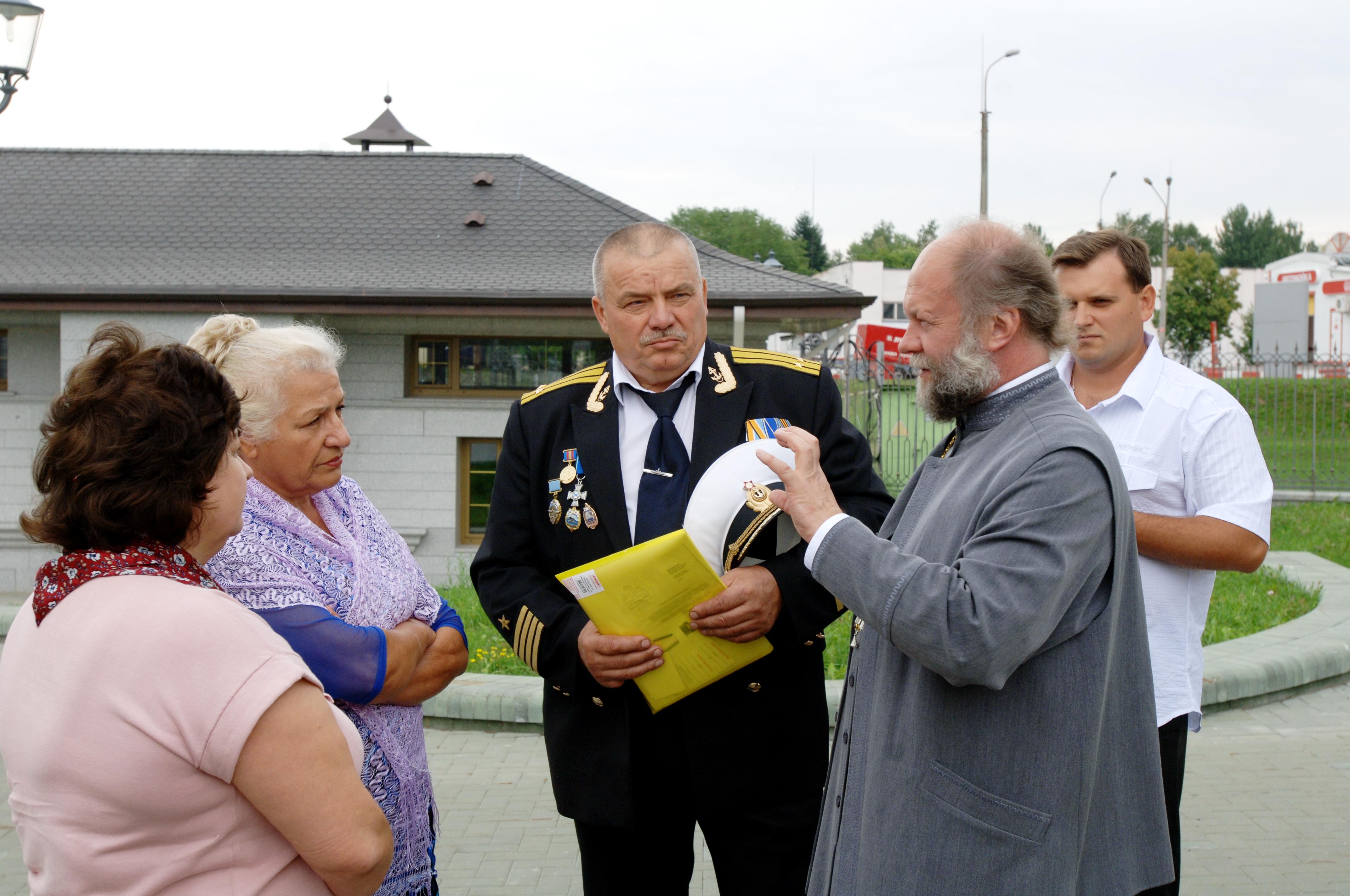 Участниками панихиды по морякам-подводникам, которую сегодня отслужили в храме, и свидетелями памятного захоронения в нишу части фрагмента атомной подлодки "Курск" стали родственники моряков, представители Белорусской православной церкви, государственных органов и общественности. На церемонию памятного захоронения приехали российские ветераны-подводники, мать старшего помощника АПЛ «Курск» Сергея Дудко, София Петровна. Их приветствовал настоятель прихода протоиерей Фёдор Повный, который сказал, что «рад видеть моряков-подводников, их жен, матерей, детей, внуков — тех, кто совершает и причастен к подвигам не только в военное, но и в мирное время.
