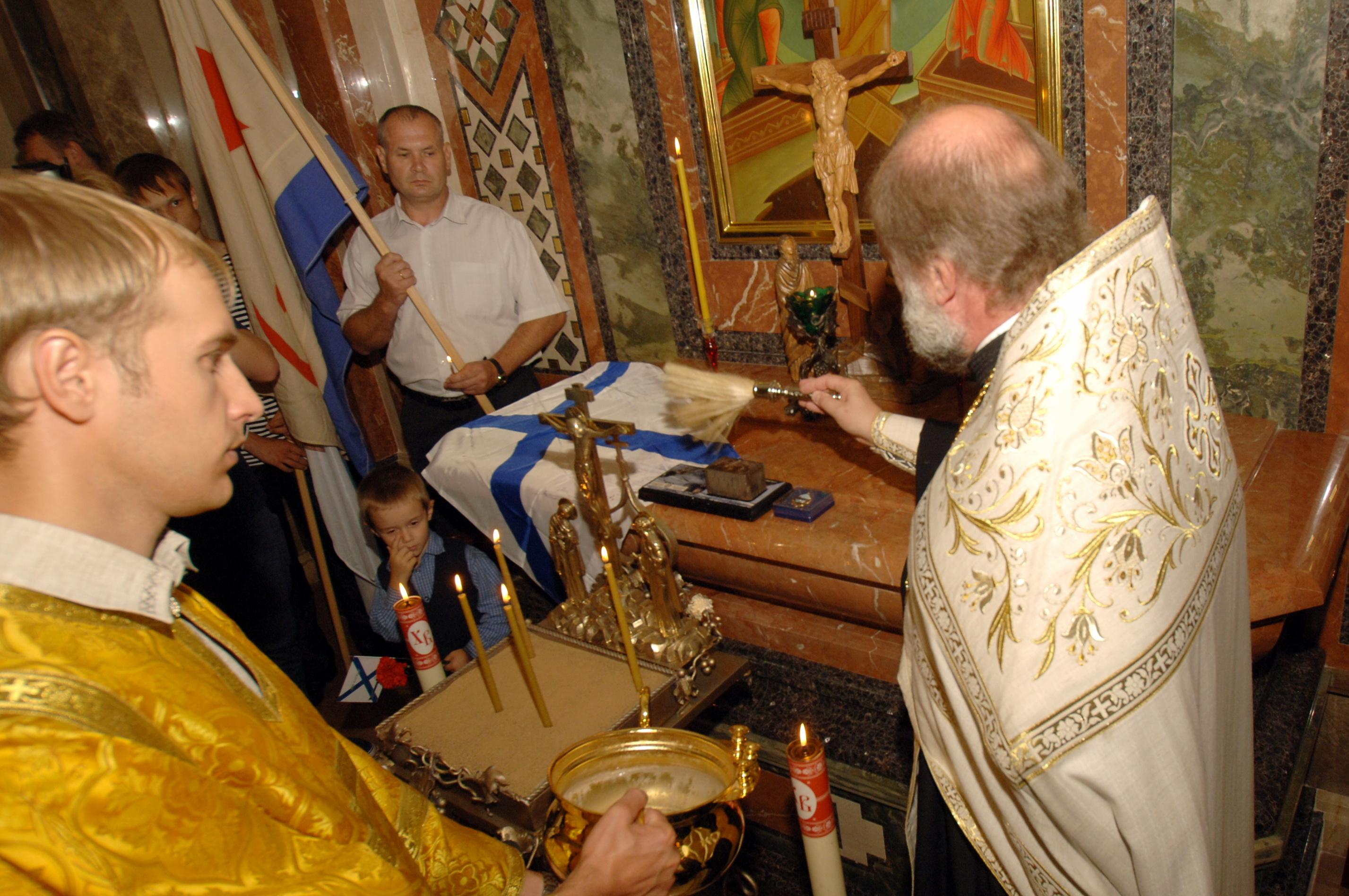 12 августа 2013 года. В Крипту «Храма-памятника в честь Всех Святых и в память безвинно убиенных в Отечестве нашем» заложили фрагмент корпуса атомной подводной лодки "Курск", трагически погибшей 13 лет назад.